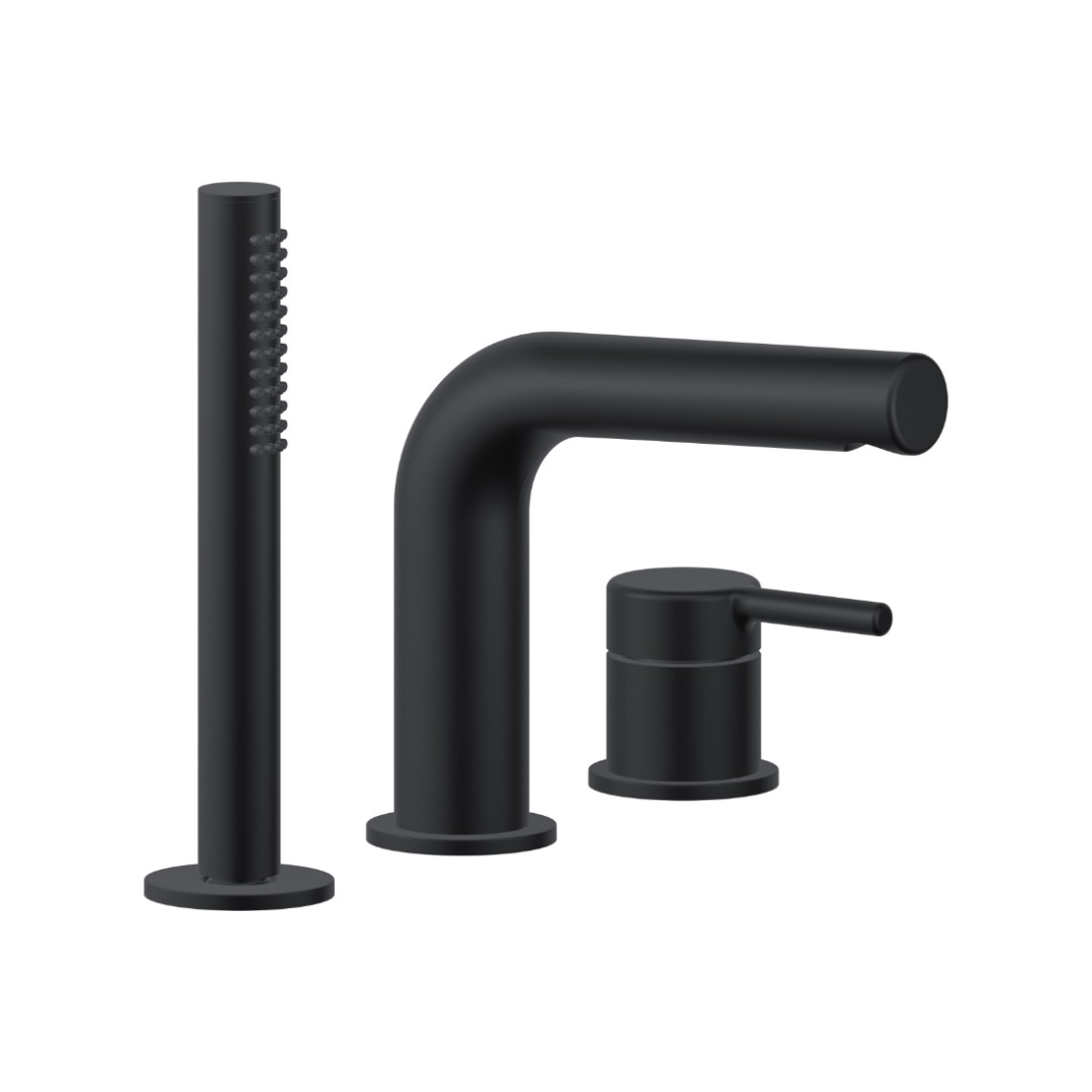 3 Loch Wannenarmatur PI Schwarz matt Wannenrandarmatur Badewannenarmatur Mischbatterie Handbrause Messing black