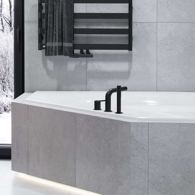 Die Wannenarmatur aus der Serie Pi – ein Meisterwerk in edler 3-Loch-Ausführung – verbindet zeitlose Eleganz mit höchster Funktionalität.