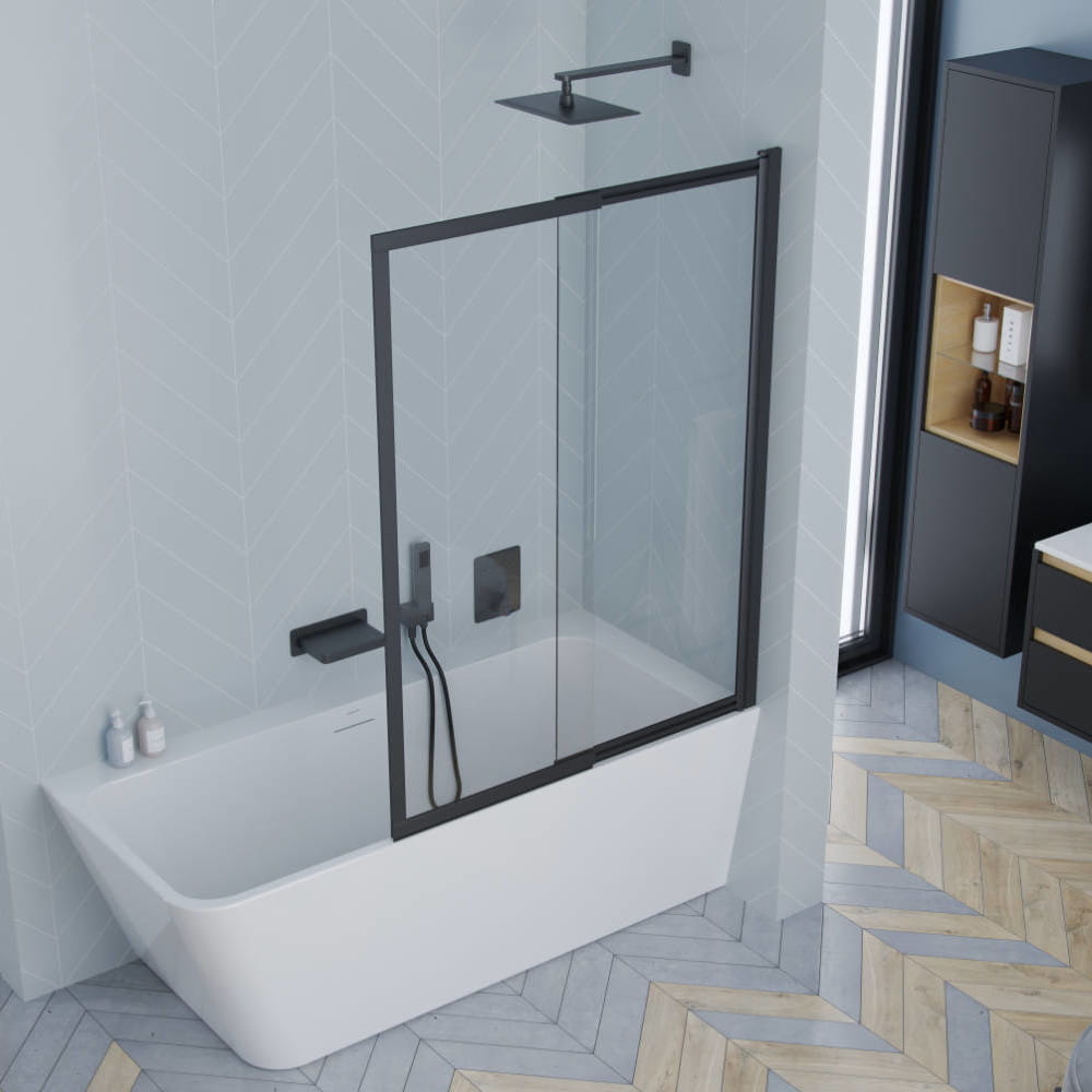 - Badewannenabtrennung Liner 2-teilig 110 x 140cm mattschwarz