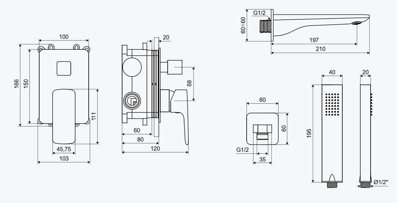 - komplette Badewannenarmatur: Wanneneinlauf, Unterputz-Badewannenarmatur, Handbrause, Handbrausehalter, Brauseschlauch
