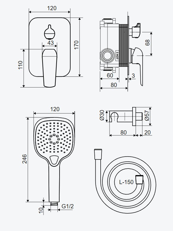 - Unterputz Set Duschsystem AREX.SET.4145GB