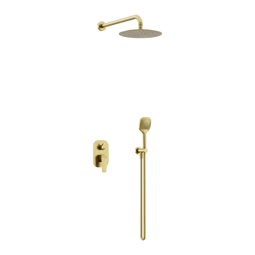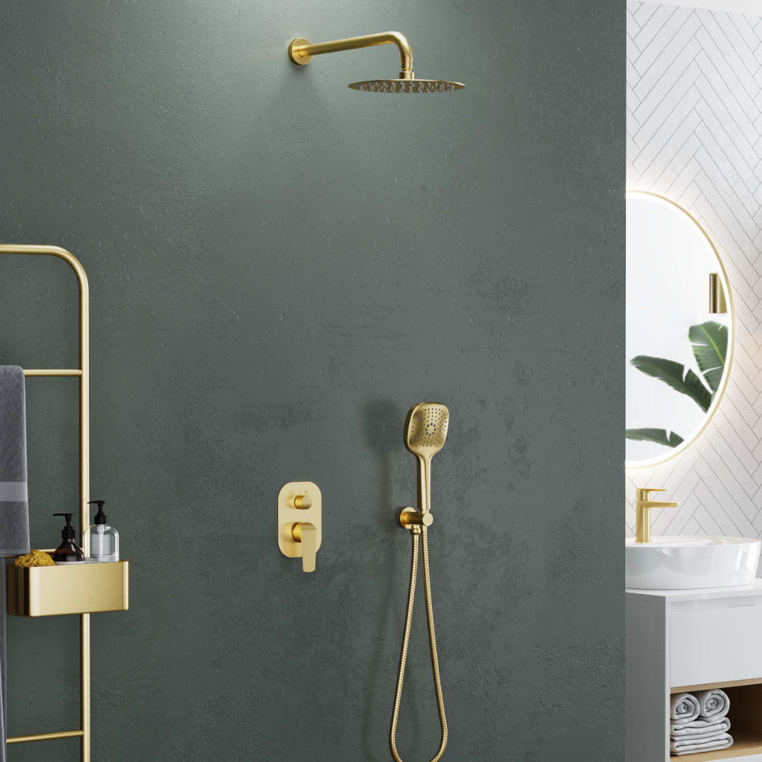 Duschsystem Dusche Unterputz Duscharmatur Regendusche mit Handbrause gold gebürstet CONTOUR