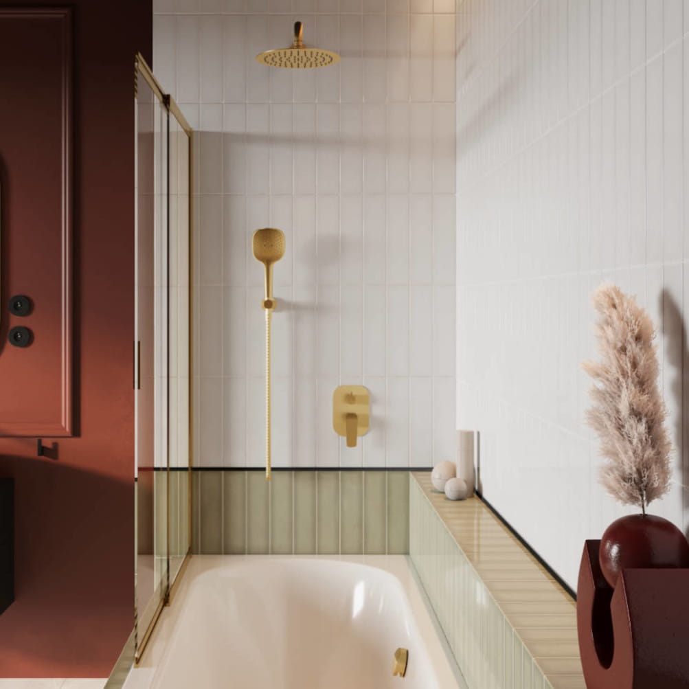 Duscharmatur Badewannenarmatur für Badewanne oder Dusche Wandarmatur Handbrause gold gebürstet CONTOUR