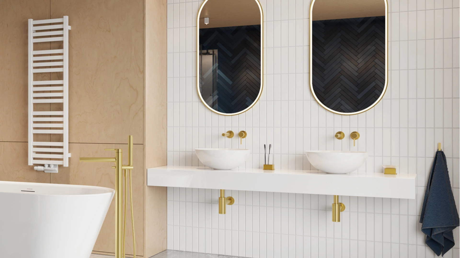 - Farbe: Gold glänzend, geeignet für Fliesenrand- / Wannenrandmontage
