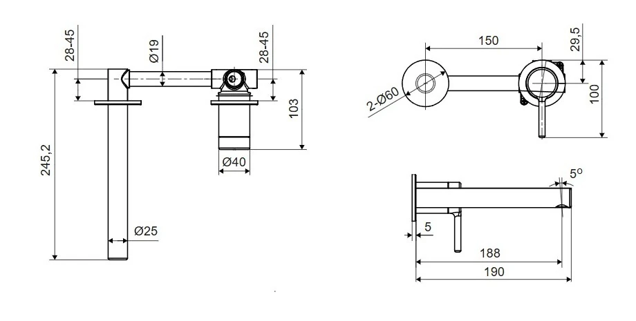 - mit Ausladung des Auslaufs von 188 mm kann in der gewünschten Höhe installiert werden und eignet sich hervorragend für Aufsatzwaschbecken ohne Hahnloch