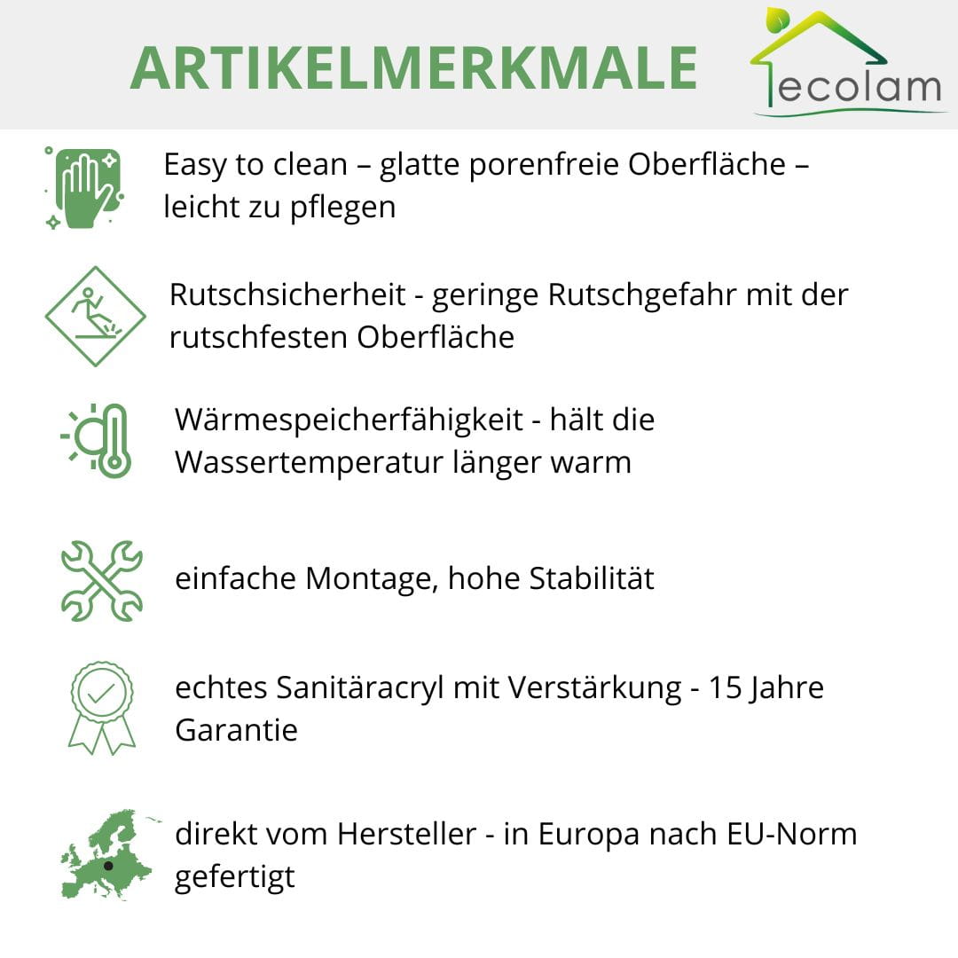 - Material: echtes Sanitäracryl mit Verstärkung (Glasfaser, Harz), einfach zu reinigen, vergilbt nicht