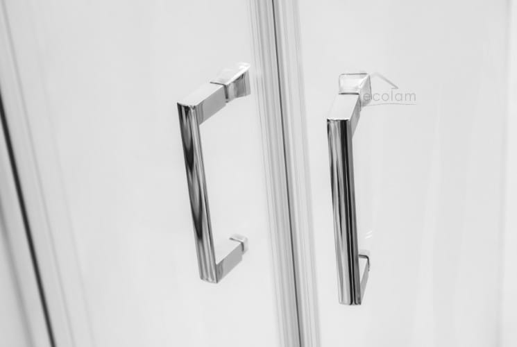 - Material: gehärtetes Glas 8 mm, echtes Klarglas, transparent, verchromte Profile glänzend