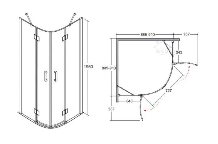 - Duschkabine Viertelkreis Viva Klarglas 90 x 90 x 195 cm