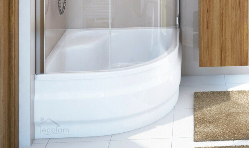 - Montage: mit Füßen ( im Set enthalten), entweder ohne Verkleidung (die Duschwanne muss dann befliest werden) oder mit jederzeit abnehmbare Schürze aus Acryl