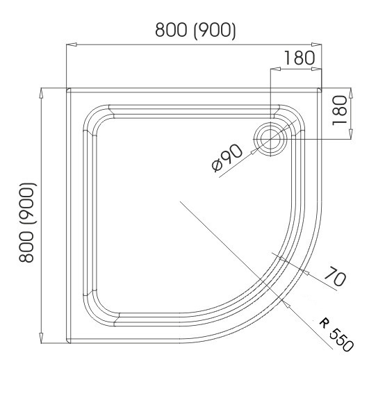 - Duschwanne Grando Plus 90 x 90 x 17 cm R55 Viertelkreis 3.0129