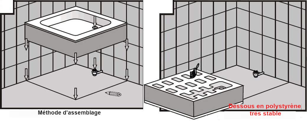 - Montage: einfache Montage, mit integriertem Styroporträger und Schürze, auf dem Fußboden stellen, mit Fliesenkleber oder Silikon (nicht im Set) abdichten