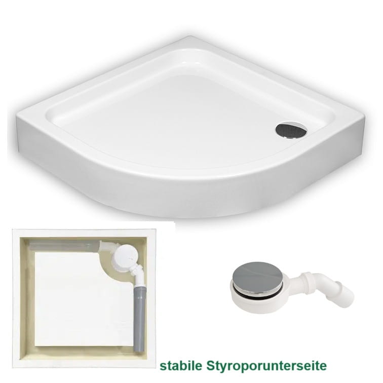 Duschwanne Duschtasse 90x90 x 17 cm Viertelkreis Grando Plus mit Styroporunterseite