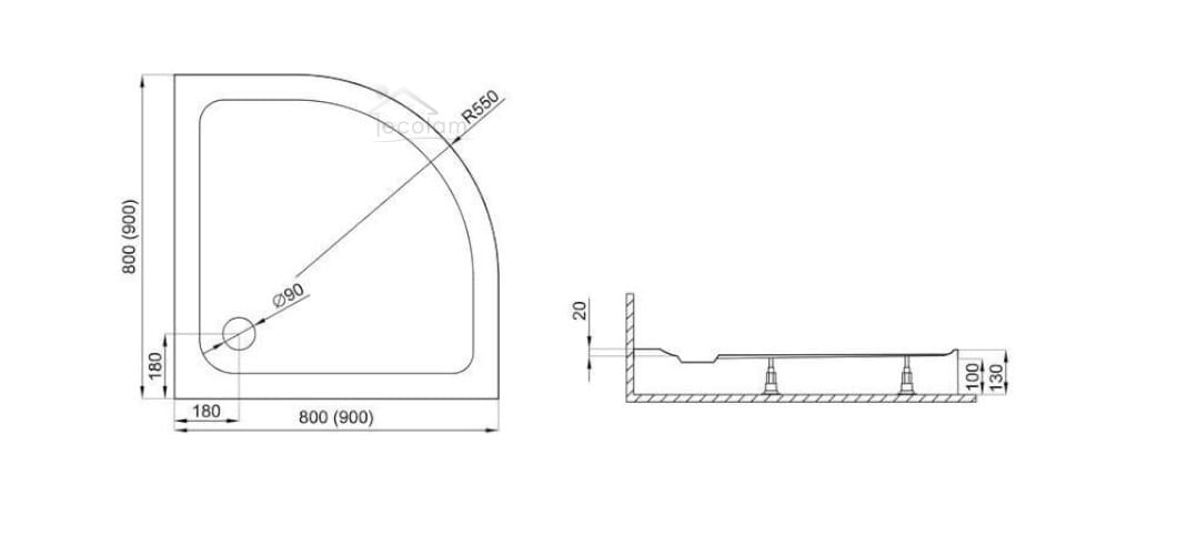 - Duschwanne Viertelkreis Standard 90 x 90 x 13 cm (00788)
