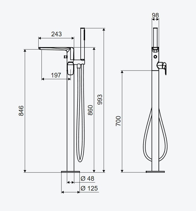Erleben Sie luxuriösen Komfort und zeitlose Eleganz mit unserer schönen Armatur. Diese silberne Standarmatur ist die perfekte Wahl für ein modernes Badezimmerdesign. Die freistehende Wannenarmatur ist ein echter Blickfang und bringt luxuriösen Spa-Komfort in Ihr Badezimmer. Ideal für freistehende Badewannen – für ein exklusives Badeerlebnis auf höchstem Niveau.