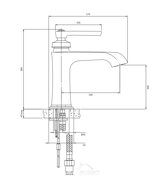 - Gesamthöhe der Armatur: 18 cm